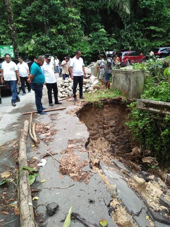 AMBON,PELAGANDONG.COM : Walikota Ambon Richard Louhenapessy,didampingi, Kepala Dinas Pekerjaan Umum Perumahan Rakyat (PUPR), Enrico Matitaputty, Kepala Badan Penanggulangan Bencana Daerah (BPBD) Kota Ambon, Demmy Paays, Kasat Pol PP Kota Ambon, Yosie Lopies, dan Plt Bappeda-Litbang, Febby Maail.tinjau lokasi Longsor Jumat (3/5/2019).
